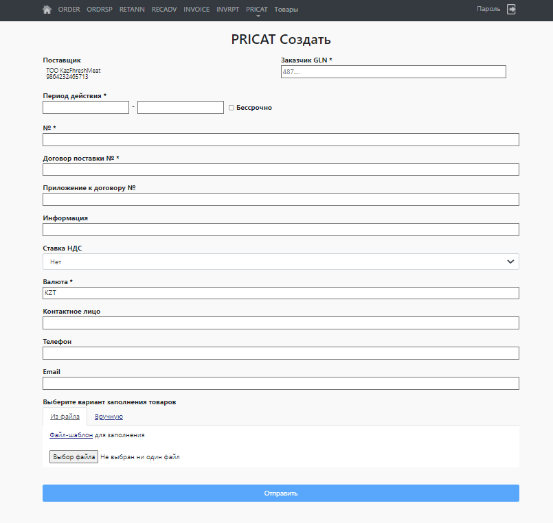 Создание «Прайс-листа» из Excel-шаблона на FS EDI.