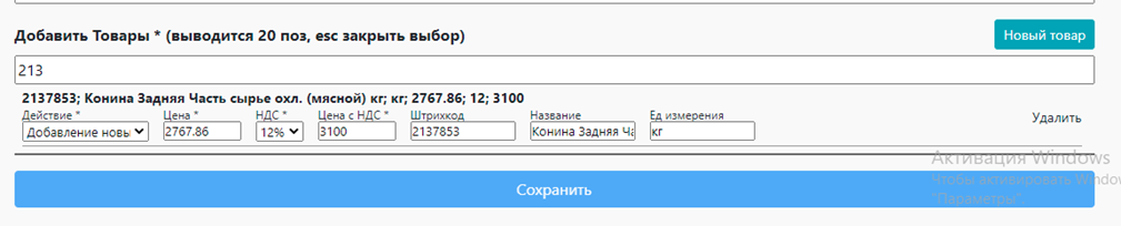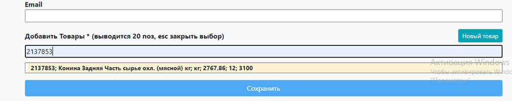 Нажмите на нужную вам позиция система автоматически заполнит поля