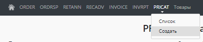 PRICAT ( Прайс-лист)-Электронное уведомление об изменении цены. Предназначен для обмена данными о ценах на товары между торговой сетью и поставщиком.